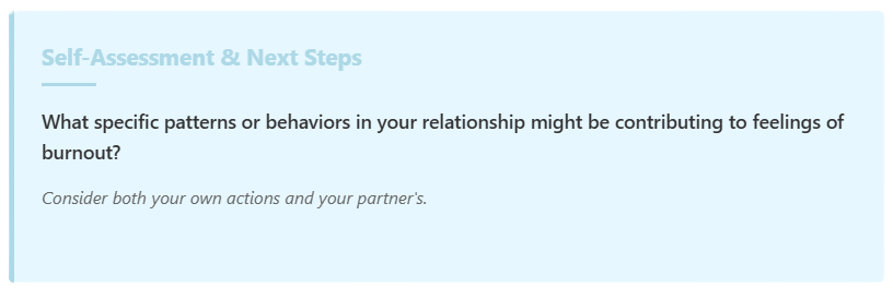 • Root Causes of Relationship Fatigue: Burnout emerges from multiple interconnected factors. Unresolved conflicts, lack of personal growth, misaligned expectations, external stressors like work pressure, and diminishing efforts to maintain emotional intimacy can all contribute to relationship exhaustion.